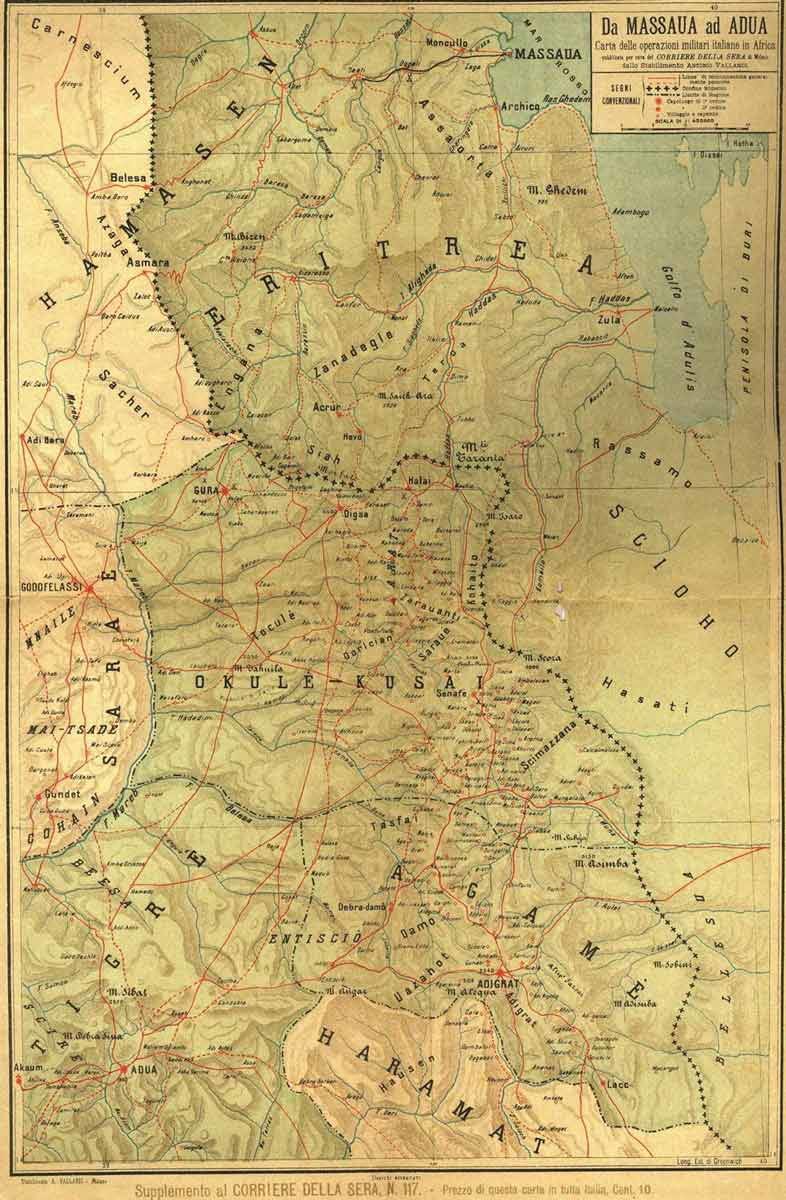 On 2 May 188952, Emperor Menelik II concluded the Treaty of Wuchale with Italy, formally setting the boundary between the Ethiopian Empire and the new colony of Eritrea. The agreement placed Asmara & Halai as the colony’s edge53. Between 2 and 4 August 188954, Italian forces occupied Asmara with the support of Bahta Ḥagos, who protected their flank with three hundred men.