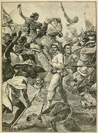 Battle of Agordat, a painting depicting Madhists & Italians in battle. Source