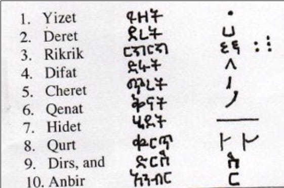 Saint Yared also created 10 different forms of notation to be using in liturgical hymns: